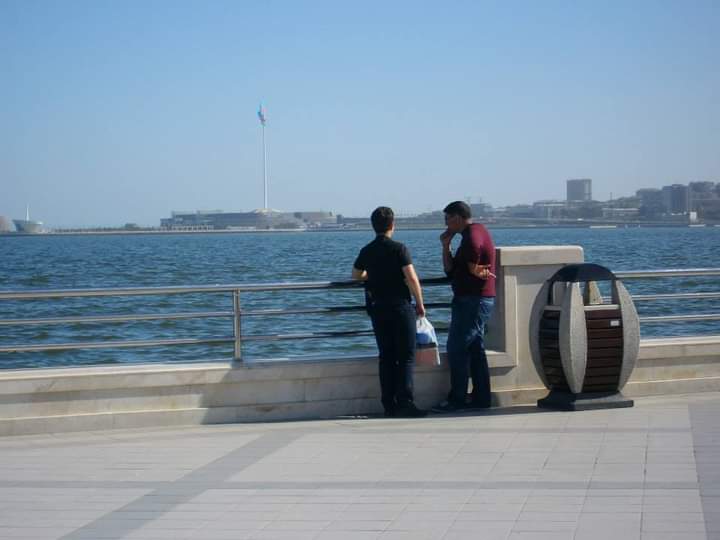 Επειδή ακόμη ο ήλιος είναι πολύ ψηλά αποφασίζουμε να βγούμε για μια μεγάλη βόλτα στο Μπακού. Είμαστε στην πιο in συνοικία της πόλης κοντά στο Sahil Metro και κατευθυνόμαστε προς παραλιακή (ή παραλημνιακή, πιο σωστά). Το πρώτο εμπορικό κέντρο Mall Bulevar ξεφυτρώνει μπροστά μας. Κατασκευάστηκε το 2009 και είναι η χαρά όλης της μεσοαστικής – προς υψηλή – κοινωνίας, η οποία μετά τον κάματο των ψώνιων (οι συνειρμοί δικοί σας) συνεχίζει με βόλτα καταμήκος της Κασπίας Θάλασσας προσπαθώντας να φανταστεί ότι στο τέλος κάπου στον μακρινό ορίζοντα κάποιο Τουρκμενιστάν υπάρχει ίσως. Στην άκρη της παραλιακής, στο πουθενά, διακρίνω το κέντρο που φιλοξένησε την διάσημη Αζέρικη Γιουροβίζιον το 2012 – να δείτε που στο τέλος οι ντόπιοι θα φτάσουν να ανακυρήξουν εκείνη την ημερομηνία ως εθνική γιορτή.
