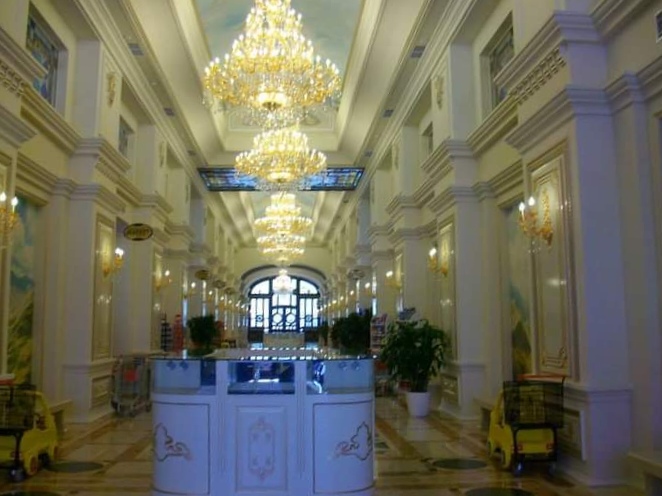 Προχωρώ λίγα μέτρα και μπαίνω σε ένα σουπερ-μάρκετ τεράστιο μέσα σε ένα πολύ ωραίο σαν έπαυλη κτίριο. Και εκεί ξαναμένω για δεύτερη φορά με το στόμα ανοιχτό και προσπαθώ να καταλάβω ότι αυτό που βλέπω είναι όντως σουπερ μάρκετ και όχι το Ανάκτορο του Μπάγκινχαμ! Τί μάρμαρα, τι αραβουργήματα, τί πολυέλαιαοι, τί ζωγραφισμένα με φρεσκο ταβάνια, τί το ένα τί το άλλο τί τζάμια, τί πορτες τί κουπαστές! Σούπερ μάρκετ! Μου έρχεται να βάλω τα κλάματα από τα νεύρα μου. Oταν σκέφτομαι ότι εγώ πάω στον Σκλαβενίτη και είναι σαν να μπαίνω σε αποθήκη τροφίμων στον 1ο παγκόσμιο πόλεμο. Δύο απανωτά « χτυπήματα» σε διάστημα 15 λεπτών είναι πολλά ακόμη και για μένα. «Αποκαρδιωμένη» (και αισθάνοντας να είμαι για τα αζέρικα στάνταρντ μία φτωχή και μίζερη τουρίστρια που κατέβηκε από τα γκράβαρα) παίρνω τα πόδια μου και ξεκινώ για πιό κάτω.