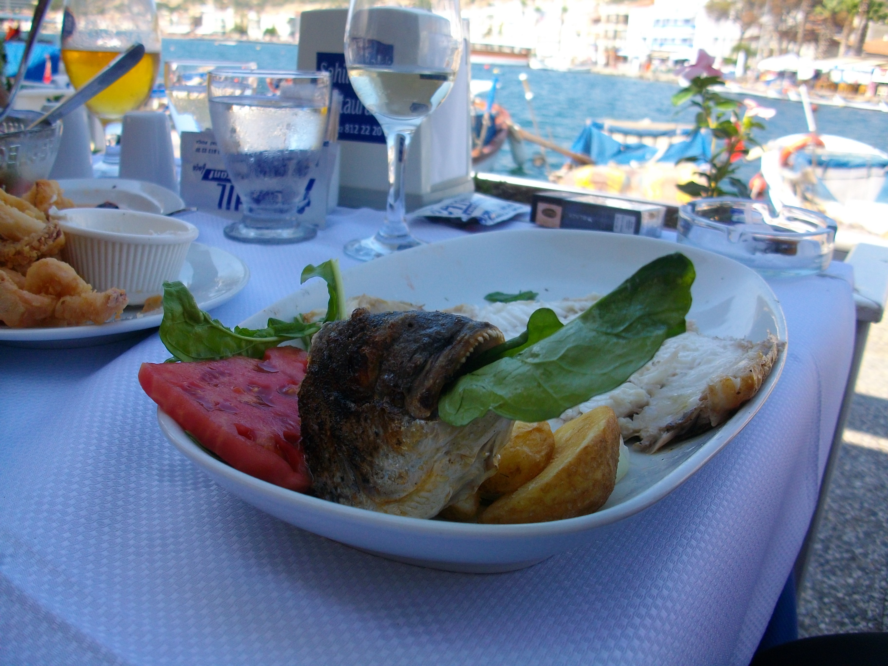 H στιγμή της χαλάρωσης, μας βρίσκει παρέα με τσιπούρες, λαβράκια, καλαμαράκια τηγανιτά και κρασάκι να αστειευόμαστε με τους χαμογελαστούς και ανοιχτόκαρδους σερβιτόρους που ήθελαν να αποθανατίσουν οπωσδήποτε τους «Γιουνάν» πελάτες τους προσφέροντάς μας δροσερό καρπούζι και πεπόνι.