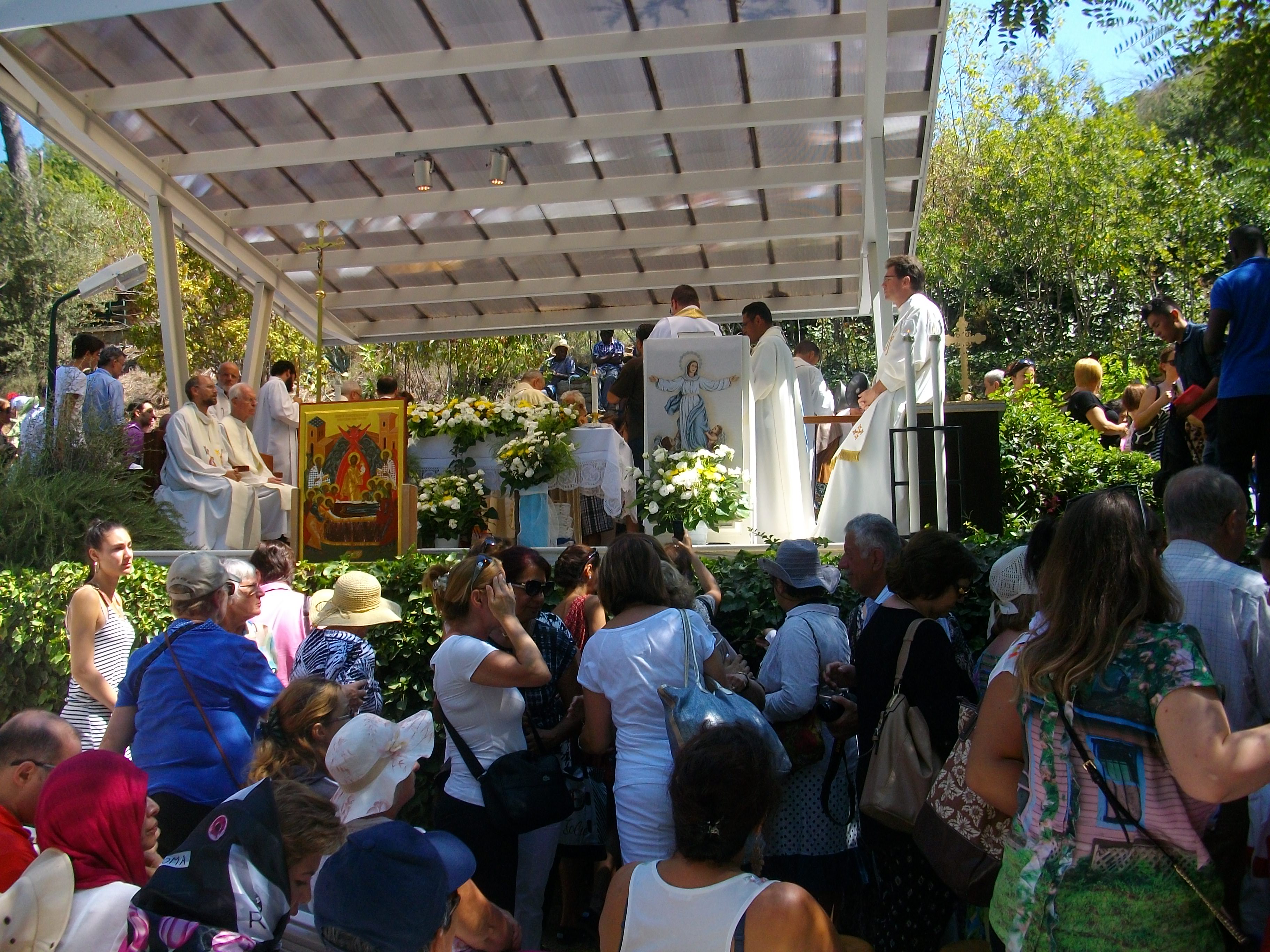 Στην συνέχεια είχαμε την τιμή, συγκίνηση και χαρά να παρακολουθήσουμε τη λειτουργία στην εκκλησία του Αγ. Ιωάννη του Βαπτιστή στον Κιρκιντζέ (Şirince), άδεια και «γυμνή» στο εσωτερικό της, που άνοιξε για πρώτη φορά την ημέρα του Δεκαπενταύγουστου, μετά από 92 χρόνια (από το 1922)!!