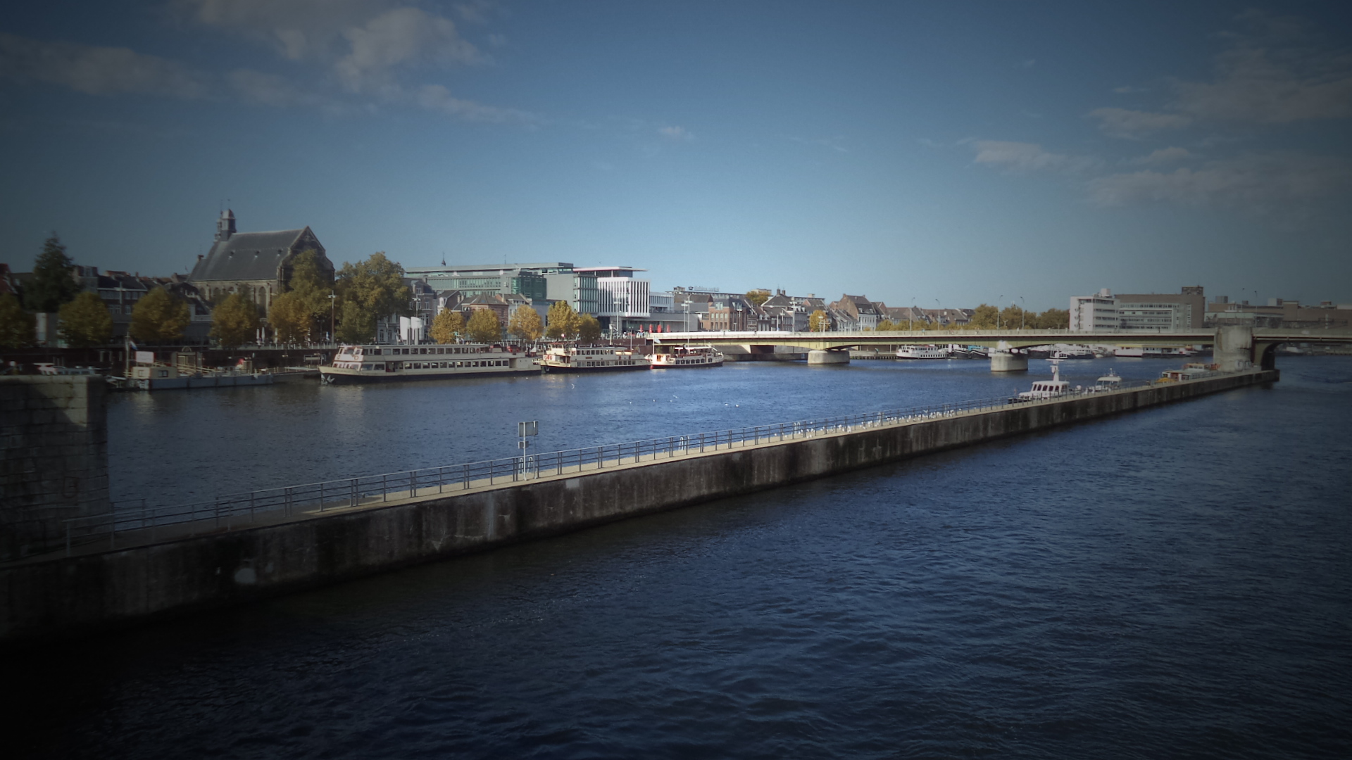 Την πόλη χωρίζει και διασχίζει ο ποταμός Meuse/Maas (Μέζ γαλλιστί και Μάας ολλανδιστί – που διασχίζει και πολλές βέλγικες πόλεις, μην το ξεχνάμε, και περνάει και μέσα από τις Αρδέννες και βγαίνει και στη Γερμανία και είναι πολύ “κοσμογυρισμένος ποταμός” γενικώς) και το όνομά της, Maastricht, σημαίνει “πέρασμα στον Μάας”. Γι΄αυτό και το ιστορικό κέντρο συνδέεται με 3 πανέμορφες πεζο-ποδηλατογέφυρες (οι άλλες που έχει η πόλη είναι μόνο για αυτοκίνητα).