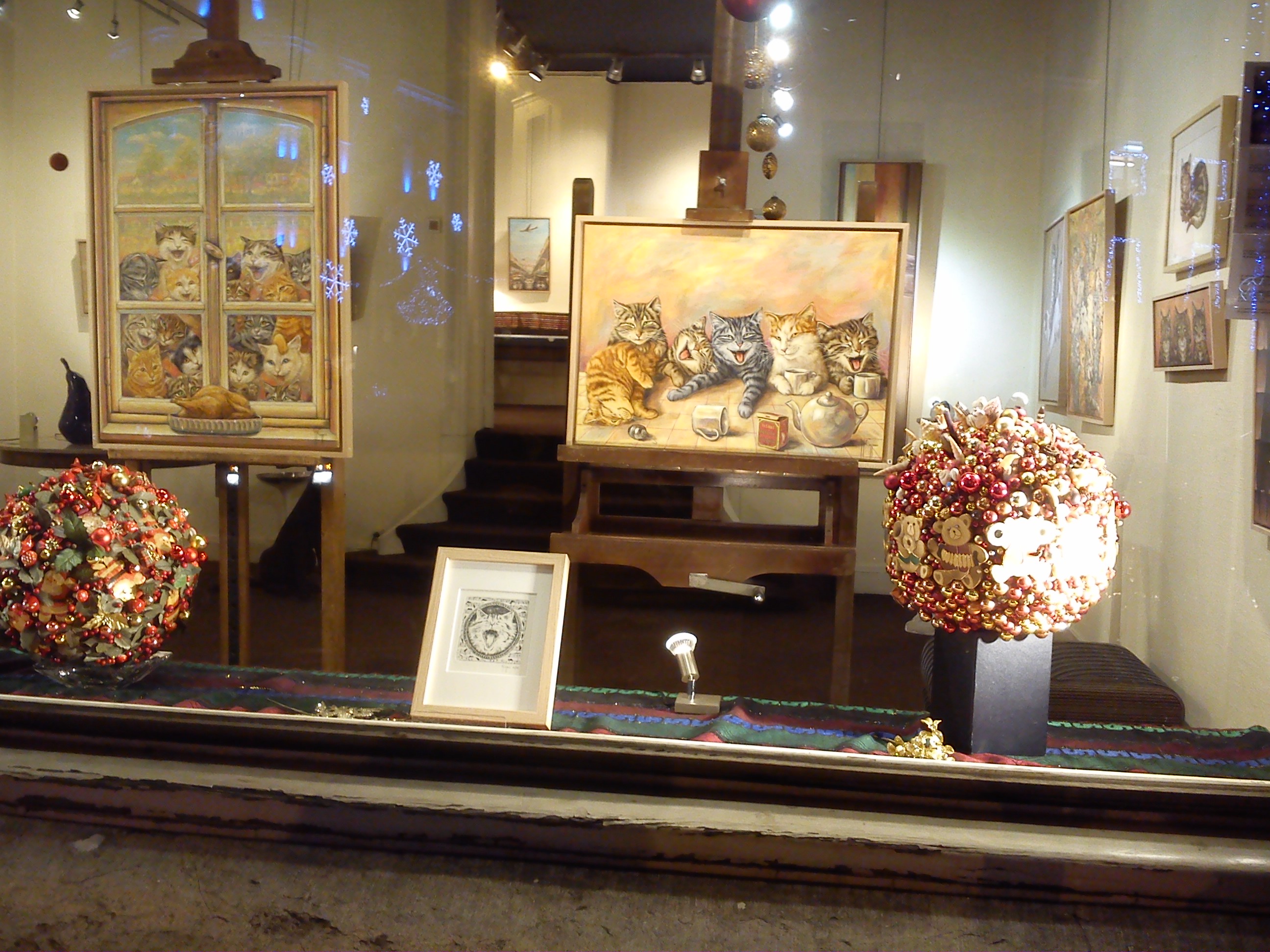 Η ομορφότερη στιγμή της βραδιάς, οι αξιαγάπητες γατούλες-πίνακες της διάσημης γκαλερί στο κέντρο της πλατείας που μας παρατηρούν με τις αξιαγάπητες μουρίτσες τους μέσα από το τζάμι. Υπάρχουν πάντα αυτές οι ιδιαίτερες πινελιές και στιγμές που σε μεταφέρουν σε ένα όμορφο γιορτινό κόσμο.