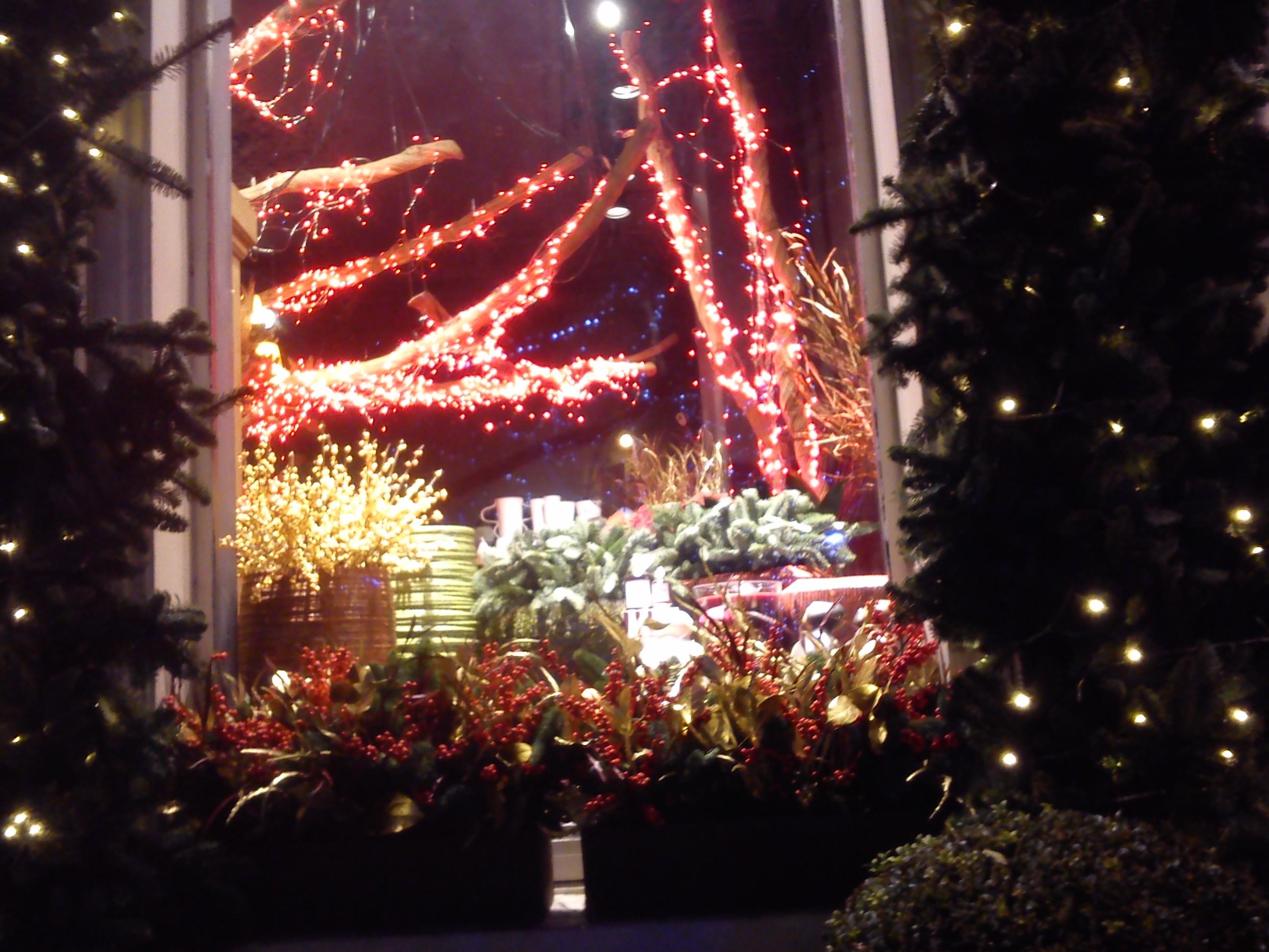 Δεξιά και αριστερά στολισμένες είσοδοι με κλαδιά πεύκων και φωτάκια, ενώ τα μαγαζιά με τα διακοσμητικά, τα σοκολατάκια και οι γκαλερί είναι κατάφωτα και υποδέχονται το κοινό.