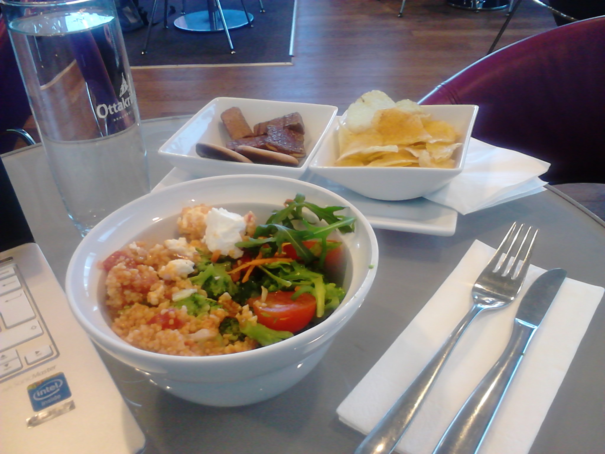 Και μπαίνω στο λάουντζ όπου γίνεται το come to see και sit to listen 🙂 ή ελληνιστί «της τρελλής και της παλαβής»! Βρίσκω τραπεζάκι με θέα αεροδιάδρομο και κάθομαι στην φαρδια αναπαυτική πολυθρόνα και απλώνω τα κουρασμένα γέρικα πόδια μου στο σκαμπό που υπάρχει μπροστά της γι΄αυτό το λόγο. Χαίρομαι που οι σύντροφοι Αυστριακοί φροντίζουν την τρίτη ηλικία!. Τοποθετώ τα συμπράγκαλα και κατευθύνομαι προς το μπαρ – τόσες ώρες θα περιμένω ας τσιμπήσω και κάτι. Συνδέομαι στο διαδίκτυο και η πρώτη είδηση που διαβάζω είναι ότι «η ωραιότερη πιλότος στον κόσμο είναι Αφγανή»!! Μα πώς;;;; Εγώ μέχρι τώρα νόμιζα ότι ήταν ο Τόμ Κρούζ!!! Μας εξαπάτησαν δηλαδή;; Συντρίμμια τα όνειρά μου!