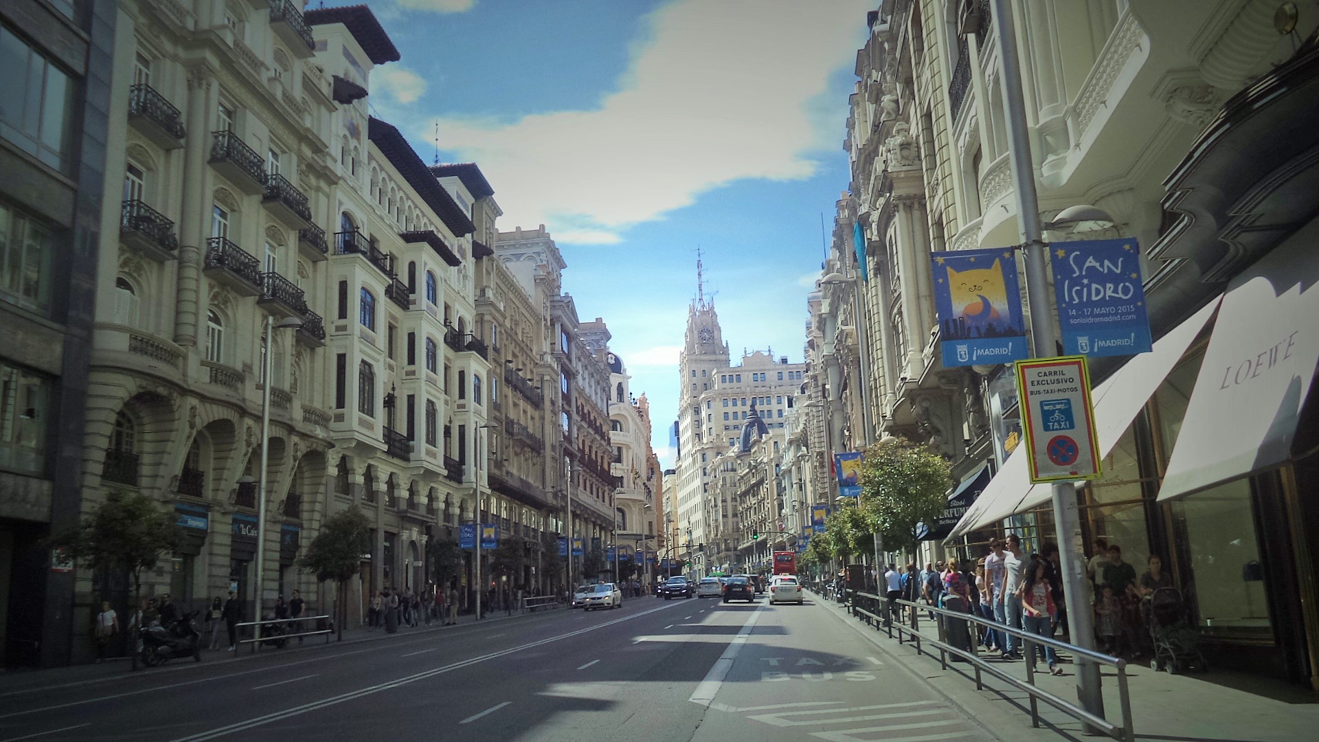 Γυρνώντας πίσω και στο κέντρο της πόλης, περνάς από την πασίγνωστη και φημισμένη εμπορική οδό Gran Vía χωρίς να σταματάς λεπτό να θαυμάζεις όλα αυτά τα μοναδικής αρχιτεκτονιής κτήρια που «σκεπάζουν» όλη τη Μαδρίτη.