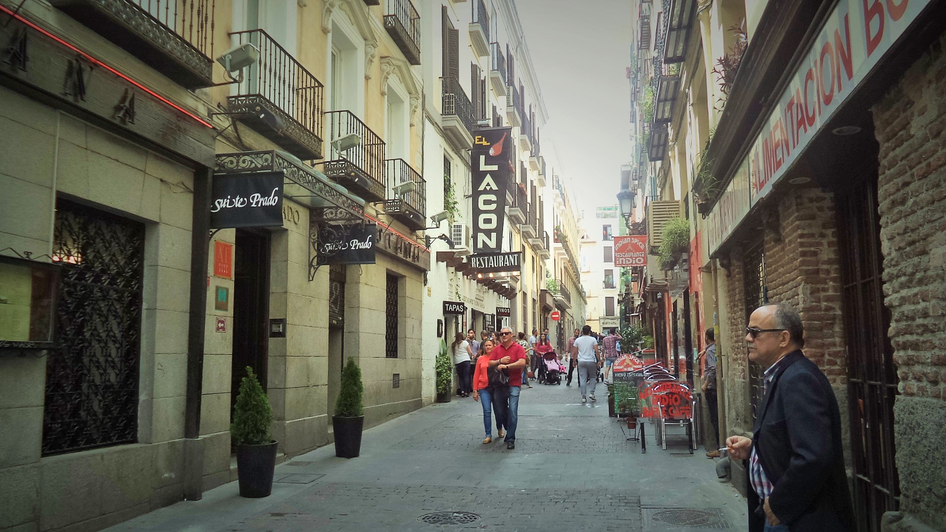 Η επίσκεψη στην Μαδρίτη προϋποθέτει πολύ μα πάρα πολύ περπάτημα και πολλή μα πάρα πολλή ενέργεια. Πετάγεσαι από το ένα στο άλλο, ξεναπερνάς από αυτά που έχεις δει για να τα ξαναδείς, δεν βάζεις κανένα πρόγραμμα, λοξοδρομείς συνέχεια και «χάνεσαι». Είναι αδύνατον να σταματήσεις να περπατάς και να μην ανακαλύπτεις όλους τους θησαυρούς της. La Latina, El Rastro, la Atocha, μέρη και ονάματα που σε τραβούν σαν μαγνήτης. Μια διαρκή κίνηση, κάτω από έναν λαμπρό ήλιο, όπου παρασύρεσαι από ορδές ευτυχισμένων, χαμογελαστών ανθρώπων, που δεν σου θυμίζουν σε τίποτε ότι η χώρα τους περνάει μια μεγάλη κρίση. Χαίρονται την καθημερινότητά τους καθισμένοι σε μια πλατεία ή στο παγκάκι ενός πάρκου, συζητώντας, τραγουδώντας, χορεύοντας κάποιες φορές σε κάποια αλάνα.