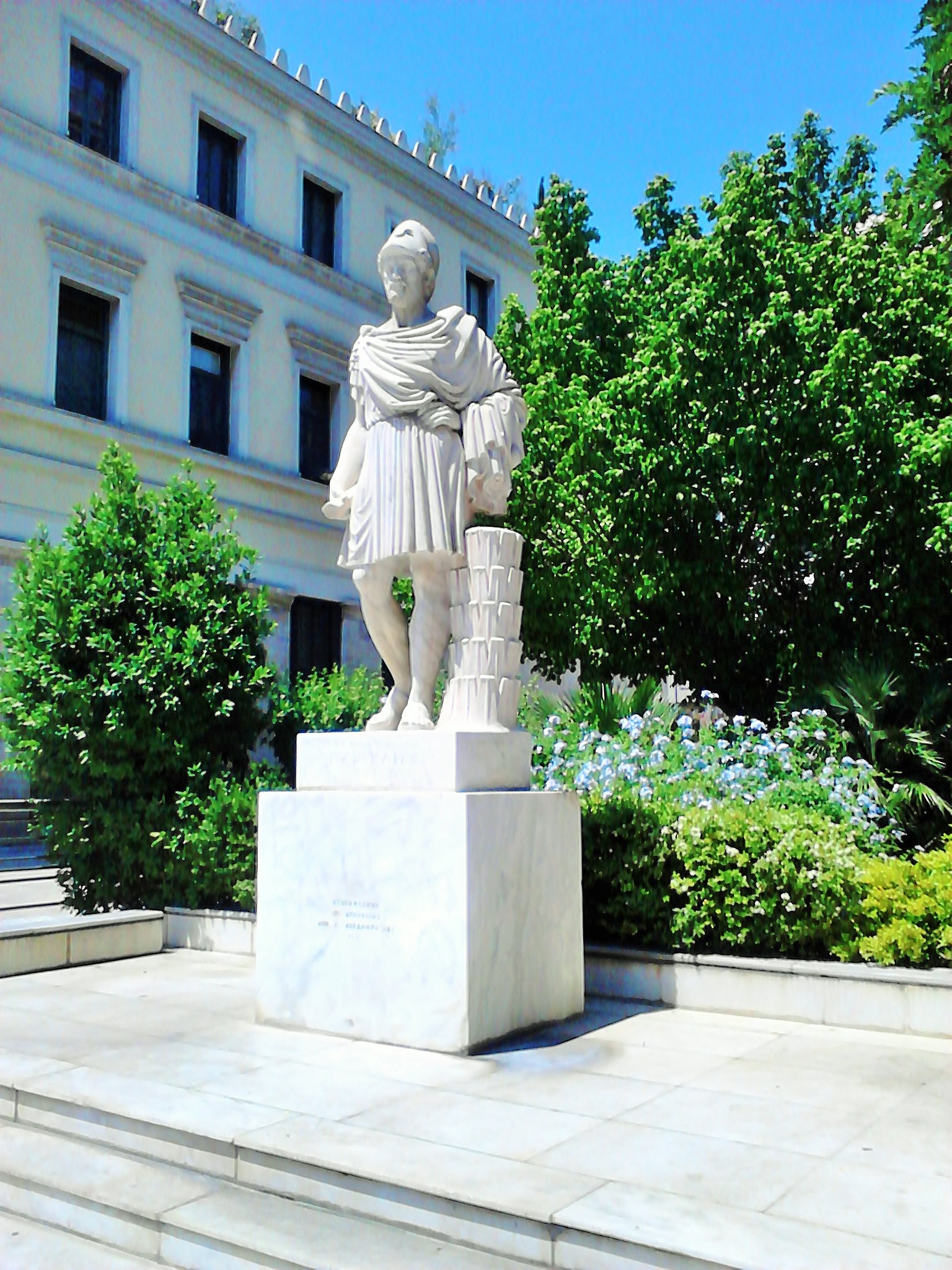 Γυρίζω το κεφάλι και βλέπω ότι έχουμε φτάσει έξω από το Αρσάκειο (Δικαστήρια). Ήταν κλειστά ευτυχώς γιατί αλλιώς μπορεί κάποιος να «διάβαζε» τις σκέψεις και να με έστελνε αυτόφωρο (αλήθεια αυτό το κτίριο ειναι κλειστό ή λειτουργεί; ). Στην απέναντι ακριβώς γωνία στην πλατεία βλέπω ένα άγαλμα – ωραίο δείχνει αλλά δεν μου θυμίζει κάτι. Πλησιάζω κοντά με τις συμμαθήτριες και βλέπουμε ότι είναι το άγαλμα του Αλ. Παναγούλη. Και αυτό ευχάριστη έκπληξη. Αποθανατίζω τον αγωνιστή (ο τελευταίος γιατί πλέον ο όρος έχει ξεφτυλιστεί εντελώς) και συνεχίζουμε το κατέβασμα της Πανεπιστημίου.
