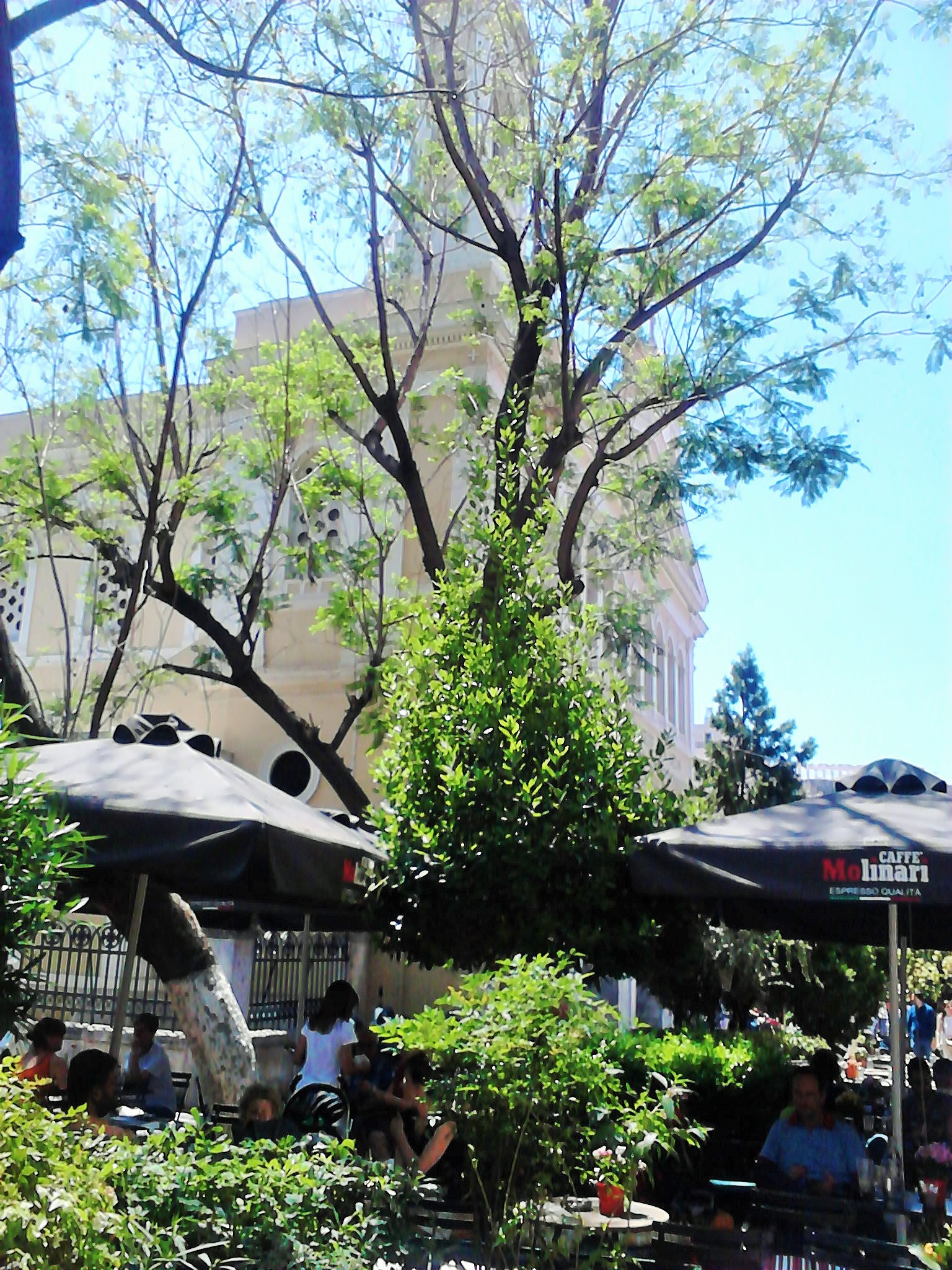 Περνάμε μπροστά από την όμορφη εκκλησία της Αγ. Παρασκευής και συναντάμε την πιό τρέντυ πλατεία του κέντρου της πρωτεύουσας, την πλατεία της Αγ. Ειρήνης με την ομώνυμη εκκλησία. Αγνώριστη η πλατεία πια. Κούκλα. Γεμάτη ζωή, κόσμο, ενέργεια. Φασαρία, πολύχρωμα καφέ. Πηγαινοέρχεσαι δεξιά και αριστερά προσπαθώντας να διαλέξεις. Οι φίλες φεύγουν, έχουν και οικογένειες ,δεν είναι όλοι αργόσχολοι σαν την αφεντιά μου. Ψάχνω το καφέ που κάθεται ο φίλος μου. Α, νάτο το βρήκα. Αγκαλιές, φιλιά καθόμαστε, παραγγέλνω εκ νέου καφεδάκι και αρχίζουμε το κουτσομπολιό και την ενημέρωση.