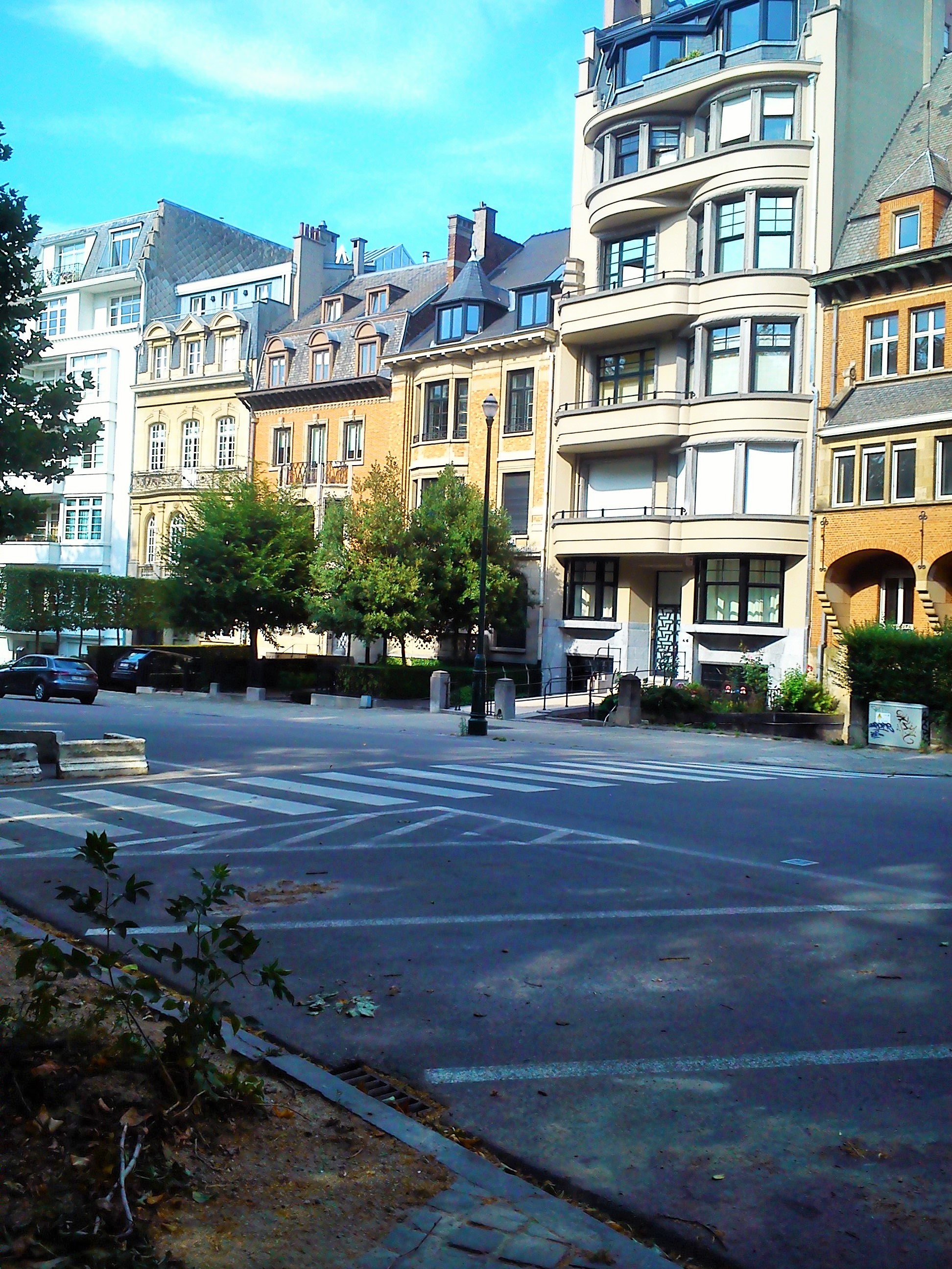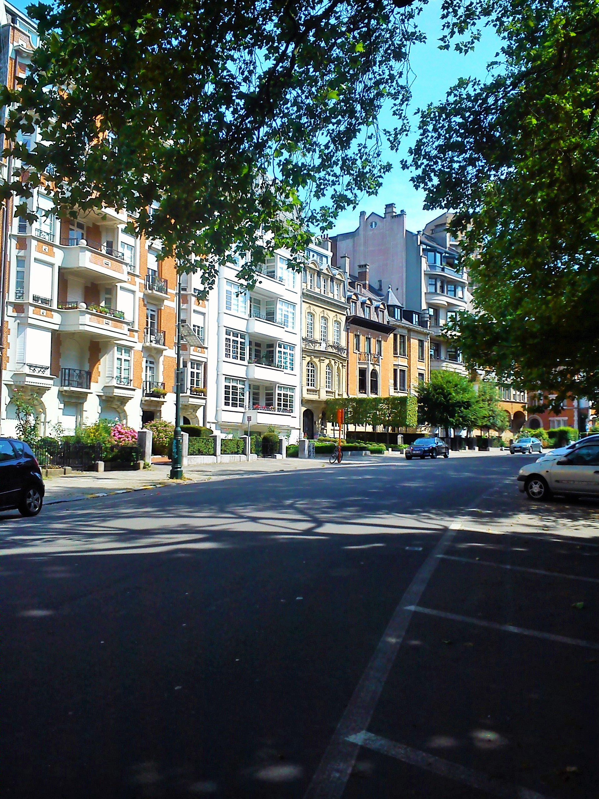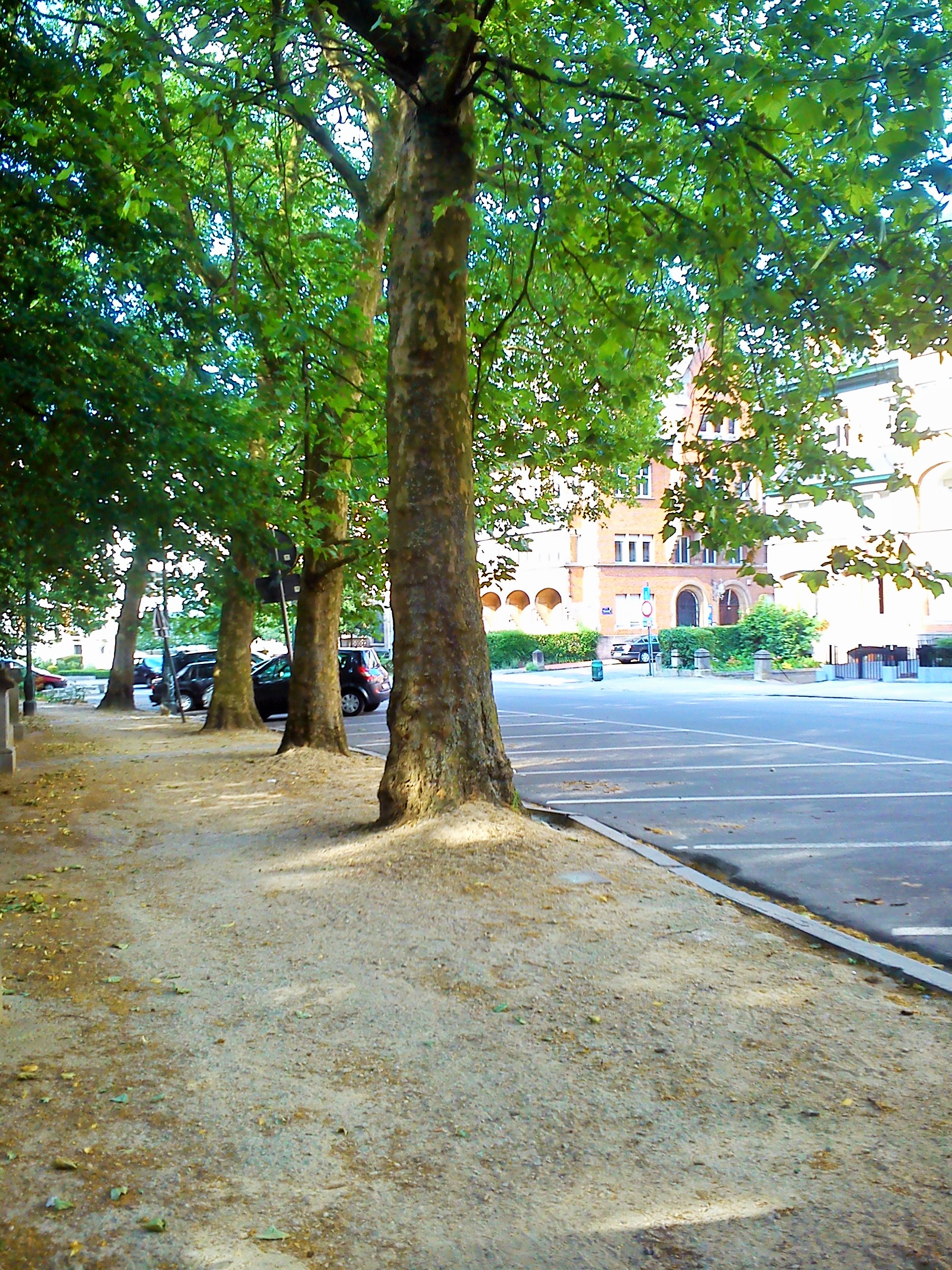 Ήλιος στο ένα πεζοδρόμιο, σκιά στο άλλο, διαλέγω τη σκιά. Κάτω από τις συστάδες των πανύψηλων δέντρων δίπλα στο Αββαείο περπατάς πιό ευχάριστα και δροσερά ενώ παράλληλα θαυμάζεις τις κατοικίες στο απέναντι πεζοδρόμιο.
