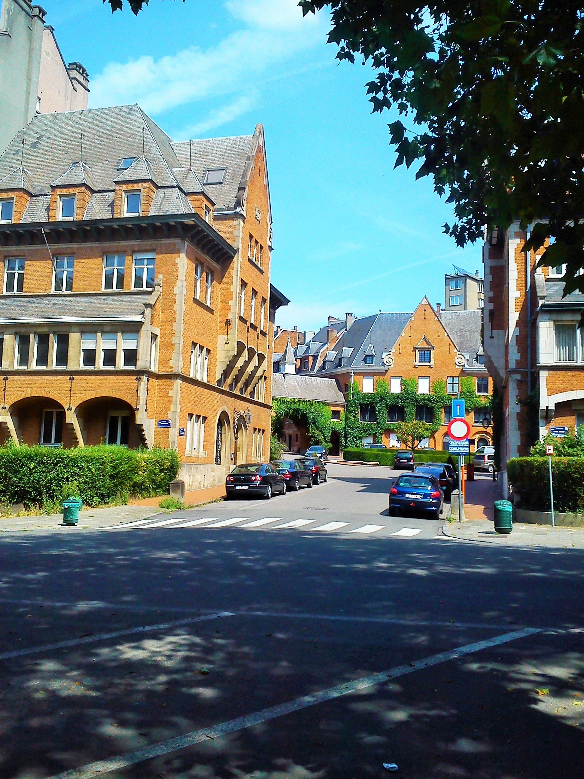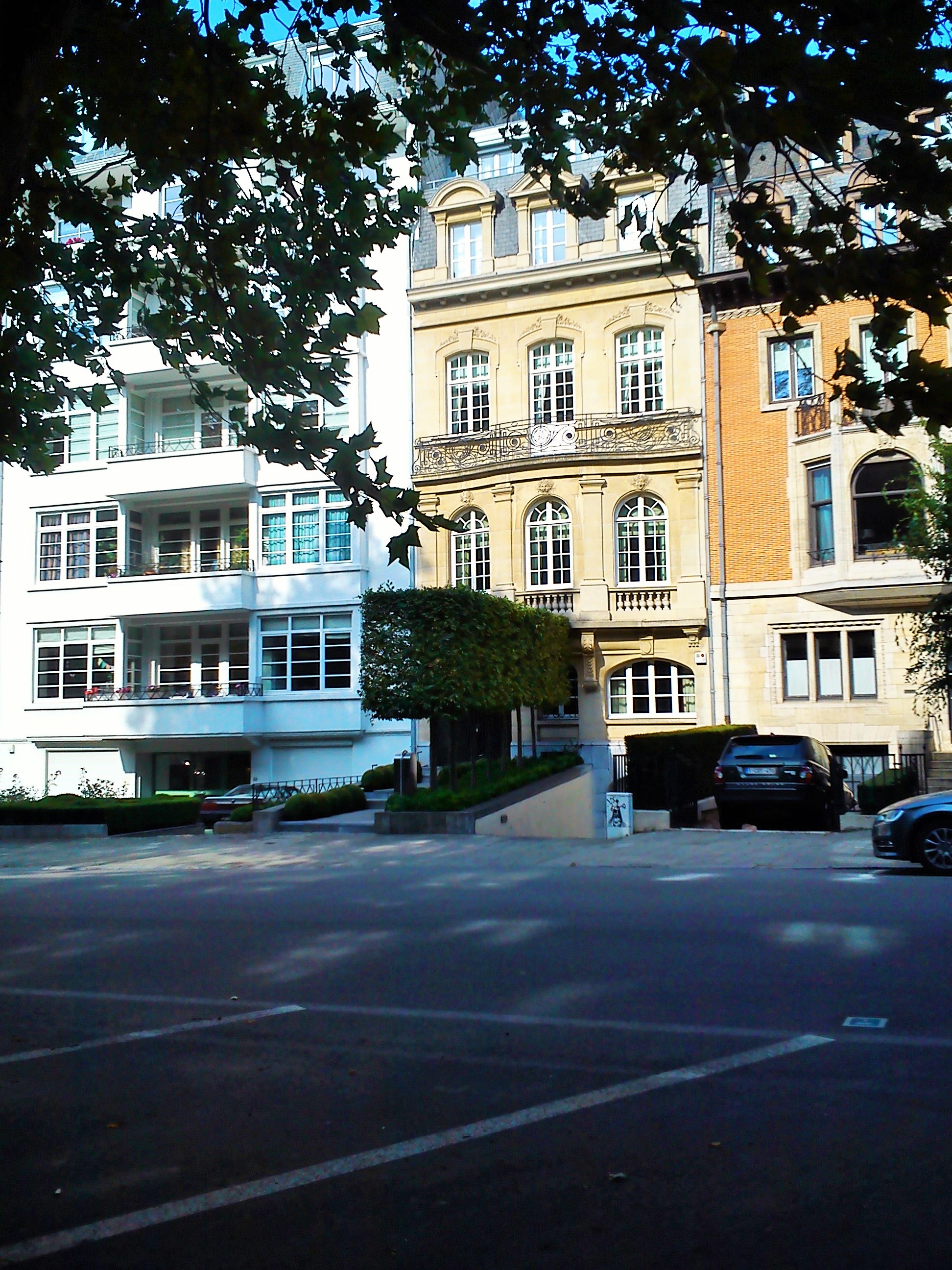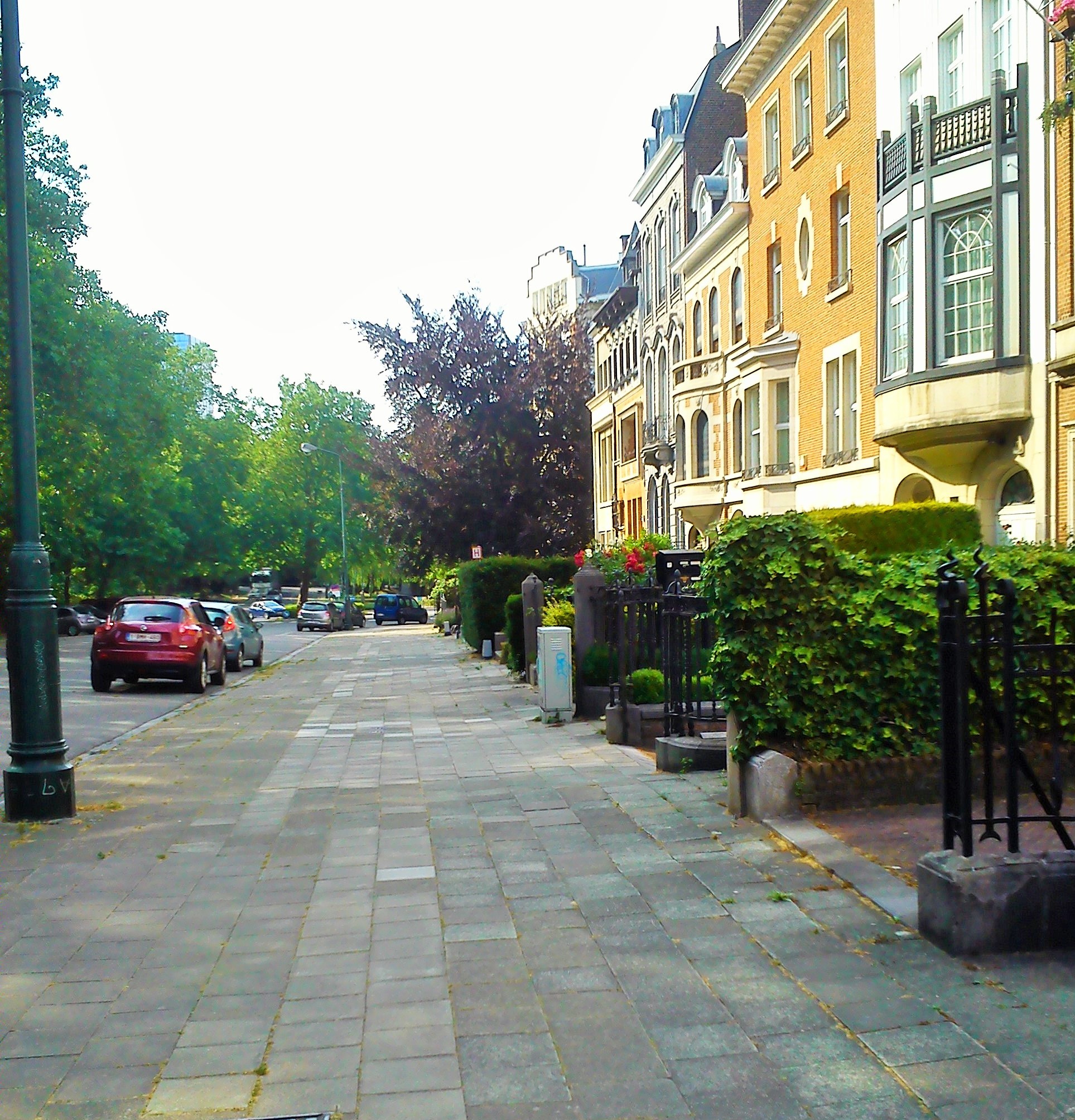 Ήλιος στο ένα πεζοδρόμιο, σκιά στο άλλο, διαλέγω τη σκιά. Κάτω από τις συστάδες των πανύψηλων δέντρων δίπλα στο Αββαείο περπατάς πιό ευχάριστα και δροσερά ενώ παράλληλα θαυμάζεις τις κατοικίες στο απέναντι πεζοδρόμιο.