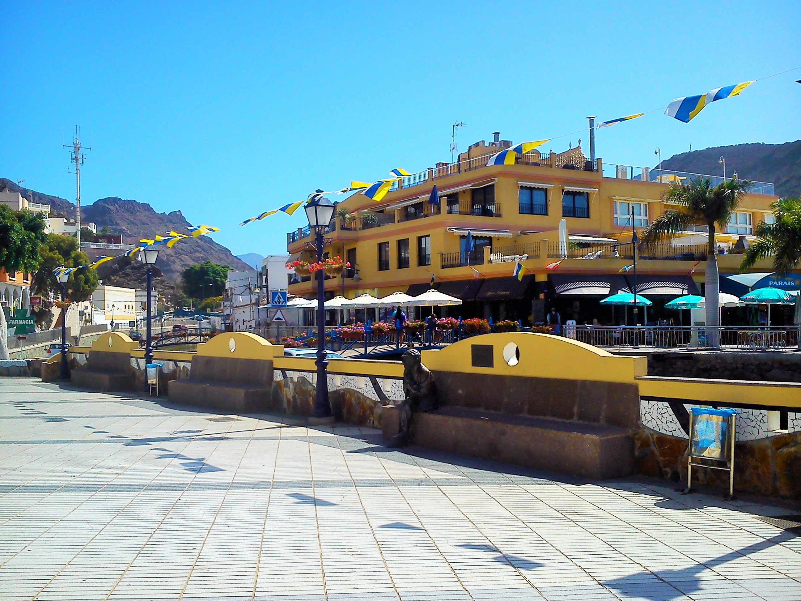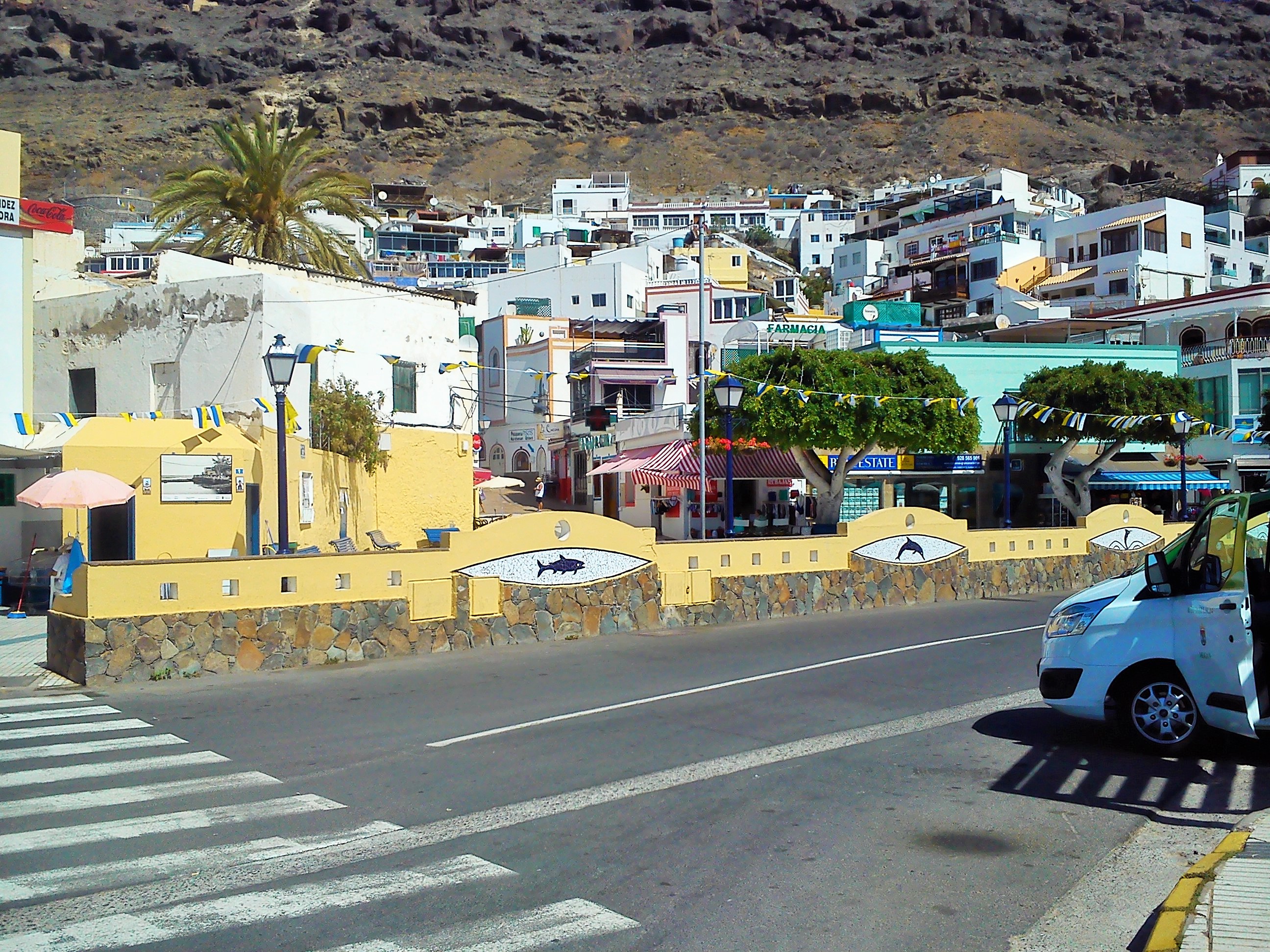 Σήμερα μάλιστα «πέσαμε» και σε γιορτή και πανηγύρια, αφού ήταν ο εορτασμός της Virgen del Carmen, προστάτιδας των ναυτικών που γιορτάζεται σε όλη την Ισπανία. Μεγάλη και σημαντική φιέστα στην περιοχή, με ολόκληρο στόλο από βάρκες, γιωτ και όλα τα θαλασσινά καράβια να κάνουν τη διαδρομή από το κοντινό Arguineguín στο Puerto de Mogán και μεταφέροντας την εικόνα της Παναγίας. Μουσικές, μπάντες του δήμου με τον Δήμαρχο να υποδέχεται το στόλο, πλήθος κόσμου να έχει κατακλύσει το λιμανάκι του χωριού, βεγγαλικά μέρα μεσημέρι και γενικώς χαμός στο ψαροχώρι.