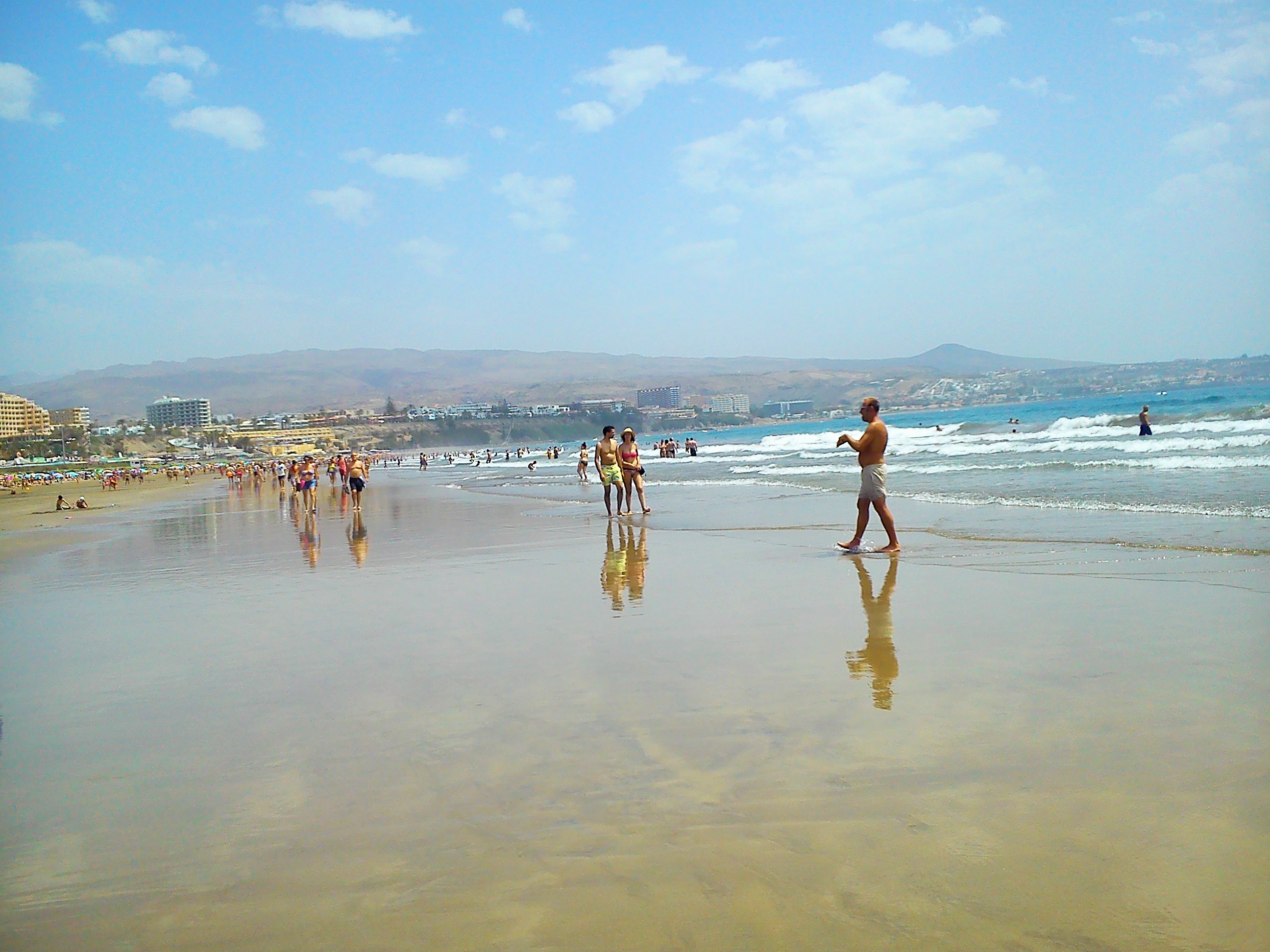 Οι δύο τελευταίες μέρες των διακοπών, η Πέμπτη και η Παρασκεύη, ήταν αφιερωμένες στη θάλασα, στα κύματα του Ατλαντικού, στον ήλιο, στο περπάτημα πανω κάτω της 8 χιλιομέτρων ατέλειωτης παραλίας Playa del Inglés, στο χάζεμα των αμμόλοφων σαν εικόνα από την έρημο της Σαχάρας στην απέναντι ήπειρο, και στο μαύρισμα.