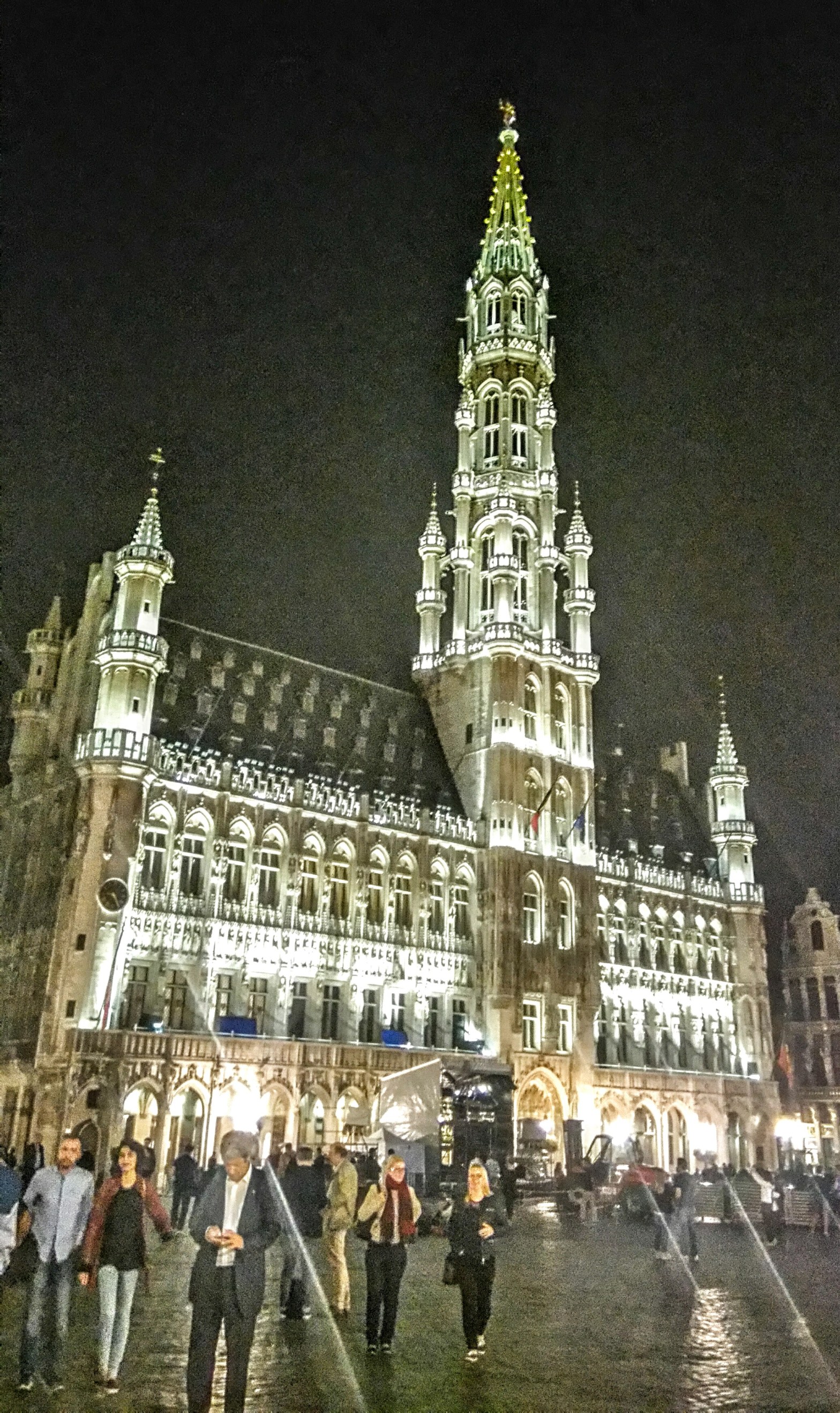 Περιβάλλεται από τα κτίρια των συντεχνιών που έπαιξαν σημαντικό ρόλο στην ιστορία της πόλης. Το επιβλητικότερο κτίριο, ανάμεσα σε όλα αυτά που κοσμούν την πλατεία, είναι το Δημαρχείο της πόλης, L’Hôtel de Ville, αριστούργημα γοτθικής αρχιτεκτονικής που κατασκευάστηκε το πρώτο μισό του 15ου αιώνα. Ο πύργος του έχει ύψος 96 μέτρα. Όλα τα κτίρια είναι επιχρυσωμένα και στολισμένα με διάφορα αγαλματίδια.